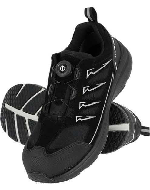 MATERIAŁ: Wierzch: skóra zamszowa/tkanina typu Oxford, zewnętrzna konstrukcja obuwia w części przedniej i tylnej wzmocniona tworzywem TPR. Obuwie posiada system szybkiego wiązania SPINON (pokrętło ze stalową linką) zapewniający precyzyjną regulację i idealne dopasowanie. Podszewka: dzianina siatkowa. Wyściółka: wymienna. Podeszwa: gumowa o właściwościach antypoślizgowych (podłoże z płytek ceramicznych pokryte gliceryną), odporna na olej napędowy oraz działanie wysokiej temperatury w krótkotrwałym kontakcie (do 300°C/1min.), nowoczesne urzeźbienie podeszwy odprowadza najdrobniejsze ciekłe zanieczyszczenia oraz zwiększa antypoślizgowość i przyczepność do podłoża. KAT. BEZPIECZEŃSTWA: S1 FO HRO SR. Podnosek kompozytowy. Właściwości antyelektrostatyczne. Absorpcja energii w części piętowej. Zamknięty obszar pięty. Elementy odblaskowe. NORMA: EN ISO 20345:2022.