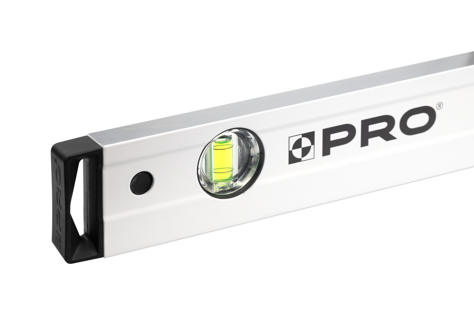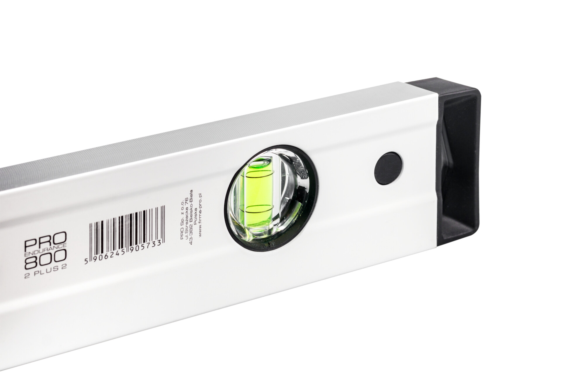 Poziomnica PRO800 malowana biała dwustronnie frezowana z uchwytami i libellą 2% 120 cm PRO