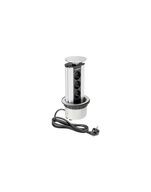 Przedłużacz biurkowy wpuszczany, 3 x schuko srebrny marki GTV przeznaczony do montażu wewnątrz pomieszczeń w biurkach, blatach i stołach. Z powodzeniem znajdzie też swoje miejsce w domach, mieszkaniach, hotelach, sklepach i na uczelniach. Wykonany z najwyższej jakości komponentów jest odporny na uszkodzenia mechaniczne. Możesz go zamontować w dogodnym miejscu blatu. Posiada trzy gniazda elektryczne z uziemieniem. Panel otwiera się poprzez naciśnięcie przycisku. Nie nadaje się do montażu w wilgotnym środowisku oraz na zewnątrz budynków. Wykonany z najwyższej jakości komponentów jest trwały i bezawaryjny. Może więc służyć przez długie lata użytkowania. Przedłużacz biurkowy, wpuszczany wyposażony jest w stopień ochrony szczelności IP20.