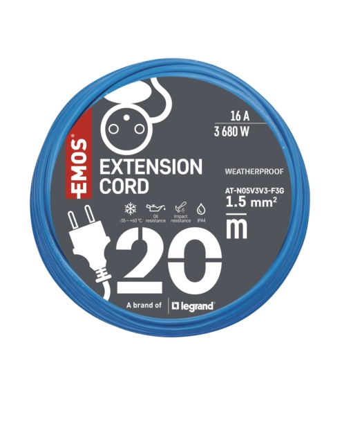 Przedłużacz mrozoodporny 20 m, 1 gniazdo, niebieski, silikonowy, 230 V 1,5 mm2 EMOS