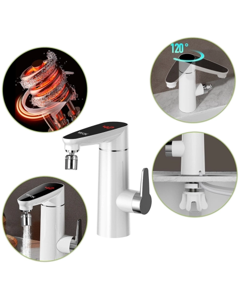 Przepływowy podgrzewacz wody łazienkowy pionowy, wyświetlacz, biały VA0203 VAYOX