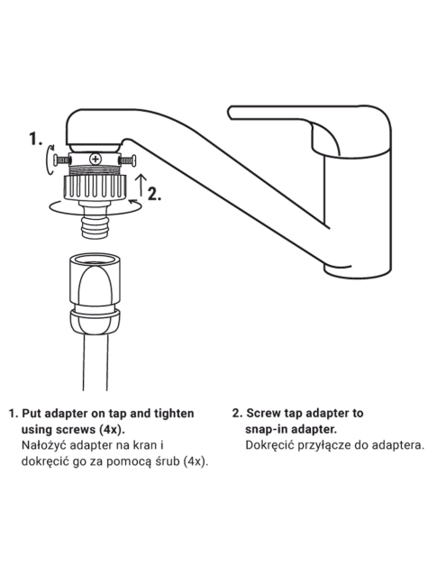 Przyłącze na kran o średnicy montażowej maksymalnej 18,5 mm, z adapterem który dokręcany jest za pomocą śrub