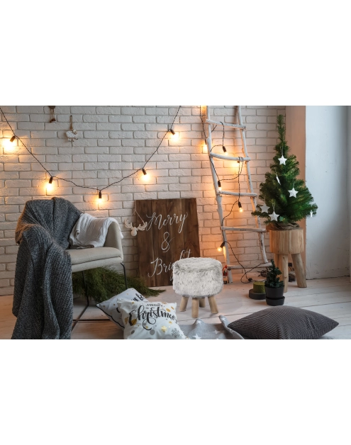 Pufa na drewnianych nóżkach ze sztucznym futrem. Ociepli wnętrze i stworzy estetyczny element dekoracyjny. Idealnie wpasuje się zarówno do sypialni, pokoju dziennego jak i dziecięcego.