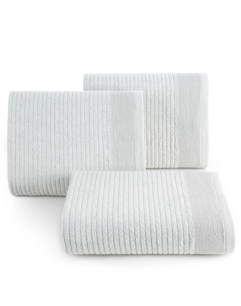 Ręcznik Naomi 50x90 cm Jasnoszary Ręcznik bawełniany w jasnoszarym kolorze, o prążkowanej strukturze z ozdobną bordiurą. Idealny do łazienek, zapewniający elegancję i funkcjonalność.