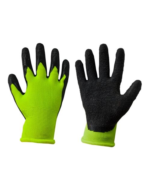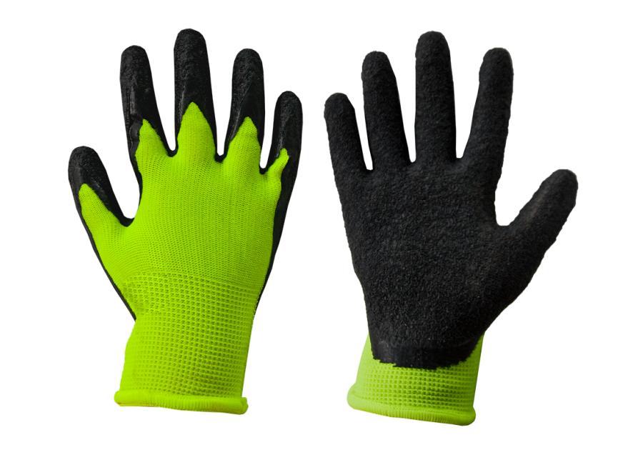 Rękawice powlekane lateksem o chropowatej strukturze.