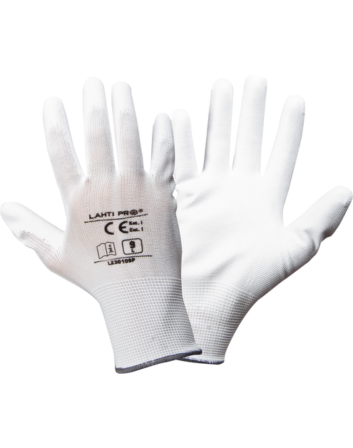 MATERIAŁ: Poliester, poliuretan. Powlekane poliuretanem zapewniającym wysoką manualność oraz doskonałe czucie trzymanego przedmiotu. Elastyczne i rozciągliwe idealnie dopasowują się do kształtu dłoni. Zakończone ściągaczem. NORMA: EN 420.