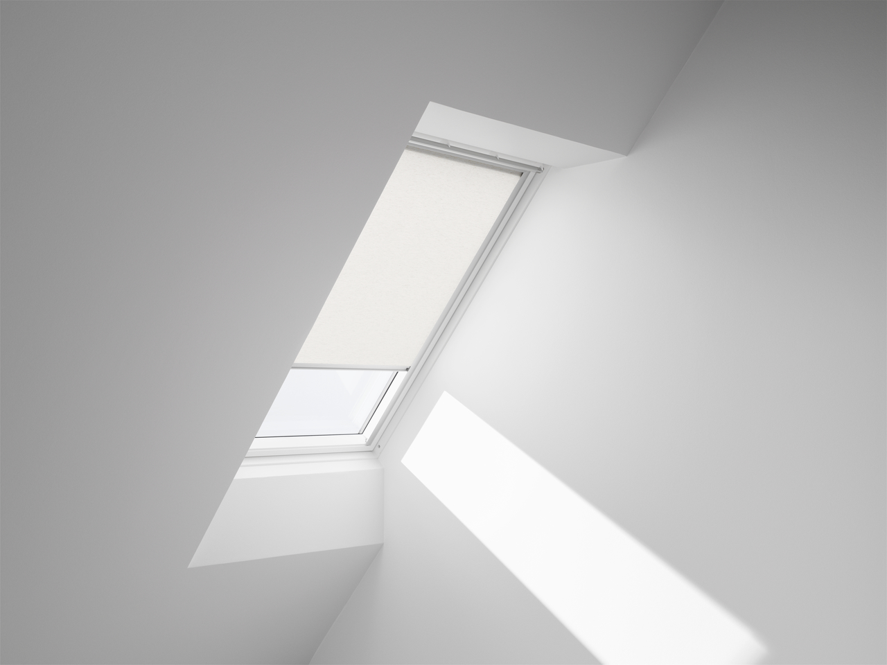 Roleta dekoracyjna VELUX umożliwia kontrolę nad ilością i natężeniem światła słonecznego wpadającego do wnętrza. Bezstopniowa regulacja polega na uniesieniu lub opuszczeniu rolety w celu dostosowania ilości światła do osobistych preferencji lub wymagań dotyczących prywatności w tych pomieszczeniach, których zaciemnianie nie jest konieczne.
