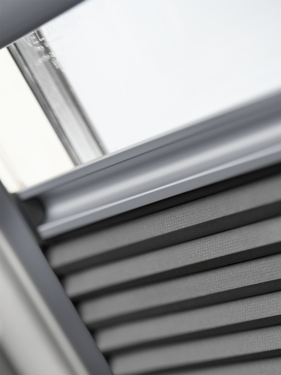 Energooszczędne rolety zaciemniające VELUX poprawiają właściwości cieplne w Twoim domu i jednocześnie podnoszą jakość snu. Podwójnie plisowana tkanina zaciemniająca ma strukturę aluminiowego plastra miodu, co poprawia jej izolacyjność. Z kolei innowacyjna konstrukcja niewymagająca mocowania do górnej lub dolnej części skrzydła okiennego pozwala na swobodną regulację położenia rolety.