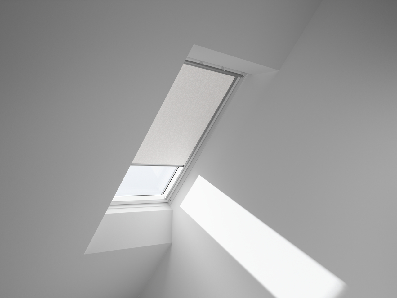Roleta zaciemniająca VELUX z prowadnicami podnosi jakość snu dzięki najlepszym właściwościom zaciemniającym dostępnym na rynku. Zatrzymują światło słoneczne, zapewniając całkowitą ciemność o dowolnej porze dnia i nocy. Smukła konstrukcja zapewnia jednocześnie płynne działanie i stylowy wygląd. Rolety zaciemniające VELUX doskonale pasują do okien dachowych VELUX.