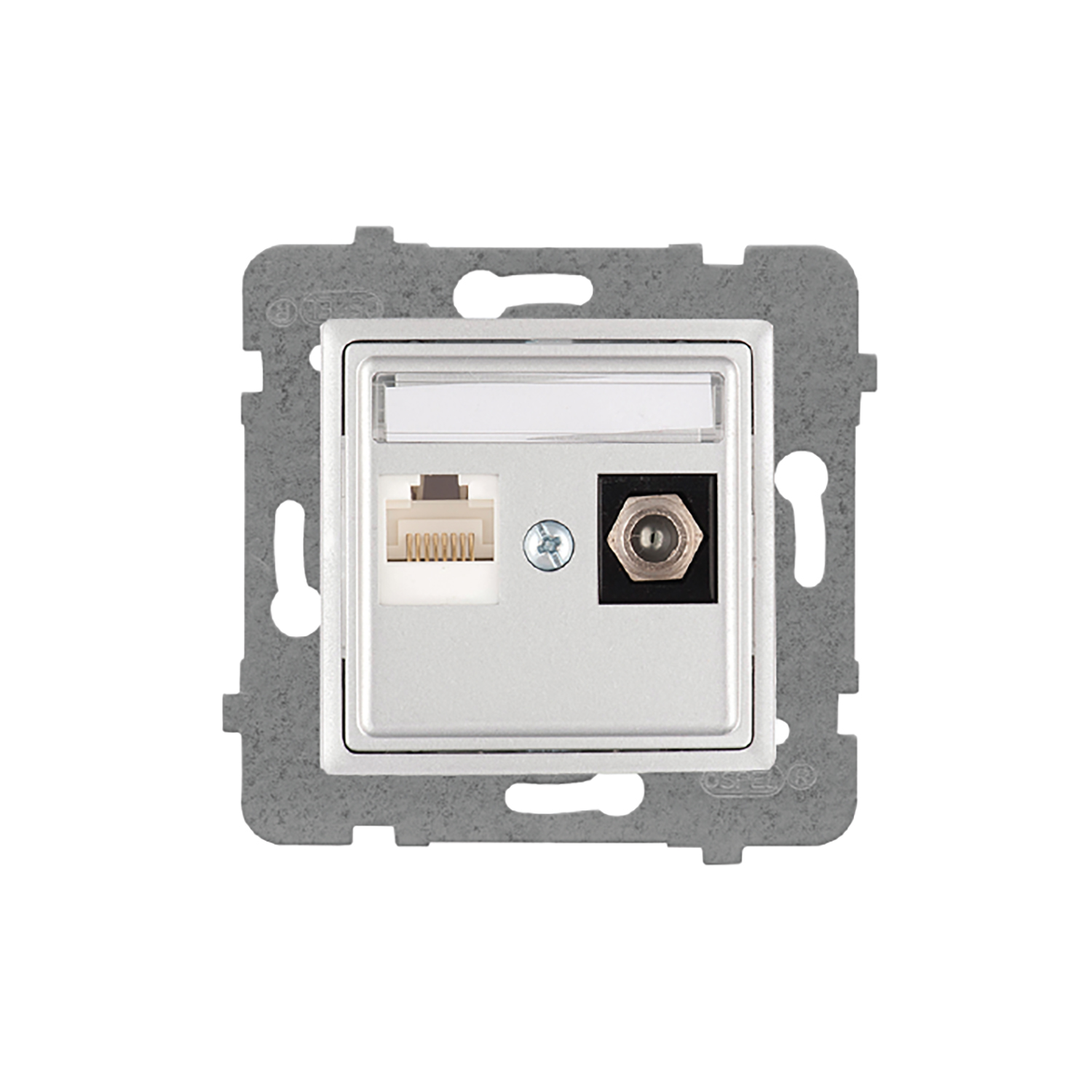 ROSA (Srebrny metalik) Gniazdo komputerowo RJ45 + antenowe F bez ramki