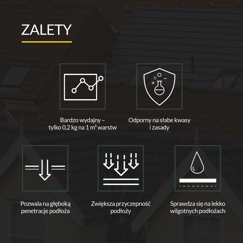 Masz w planach remont generalny bądź budowę domu? Potrzebujesz chemii budowlanej nadającej się do gruntowania i tworzenia powłok hydroizolacyjnych? Sięgnij po wydajny produkt Abizol R Roztwór gruntujący bitumiczny od TYTAN PROFESSIONAL, który pomoże Ci w wielu pracach z zakresu budownictwa. Abizol R od marki Tytan charakteryzuje się zwiększoną przyczepnością podłoży oraz odpornością na słabe kwasy i zasady. Dodatkowo pozwala na głęboką penetracje podłoża, nawet jeśli jest ono lekko wilgotne. Roztworu nie powinno łączyć ze styropianem, smołą i papą smołową. Czarny roztwór bitumiczny Tytan służy do wykonywania samodzielnych powłok hydroizolacyjnych typu lekkiego. Można go także wykorzystywać, jako podkład pod wszelkiego rodzaju papy termozgrzewalne. Tytan Professional Abizol R Roztwór gruntujący bitumiczny przeznaczony jest również do gruntowania podłoży betonowych pod wierzchnie warstwy hydroizolacyjne - ławy, fundamenty i podziemne części budowli. Zalety: - bardzo duża wydajność umożliwiająca uzyskanie z 0,2 kg aż 1 m2 warstw - w znaczący sposób zwiększa przyczepność podłoży - pozwala na głęboką penetracje podłoża, nawet na lekko wilgotnej powierzchni - posiada odporność na słabe kwasy i zasady Zastosowanie: - pozwala na gruntowanie podłoży betonowych pod wierzchnie warstwy hydroizolacje - sprawdza się w roli podkładu pod papy termozgrzewalne - umożliwia wykonywanie powłok hydroizolacyjnych typu lekkiego