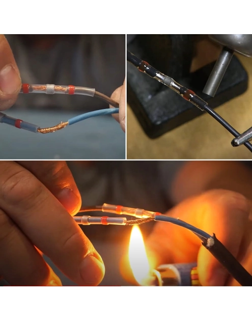 Rurki termokurczliwe z cyną i klejem VMG-S11 Vayox to świetne rozwiązanie do szybkiej i bezpiecznej naprawy instalacji. Dzięki łatwości użycia nie wymagają zaciskania, co przyspiesza cały proces. Dodatkowy klej wewnątrz rurki zapewnia wodoodporne połączenie o klasie IP 67, co czyni je idealnymi zarówno do zastosowań przemysłowych, jak i domowych. Stosunek kurczliwości wynosi 2:1, a minimalna temperatura kurczenia to 80 °C. Cyna topnieje w temperaturze 160 °C, a średnica rurek wynosi 1,7 mm. W opakowaniu znajduje się 30 sztuk. Aby wykonać trwałe połączenie, wystarczy wykonać trzy kroki: połączyć odizolowane końcówki przewodów, nałożyć rurkę z cynowym pierścieniem nad końcówkami i równomiernie podgrzewać, aż pierścień się rozpuści. Po zakończeniu uzyskujemy elastyczne i wodoodporne połączenie.