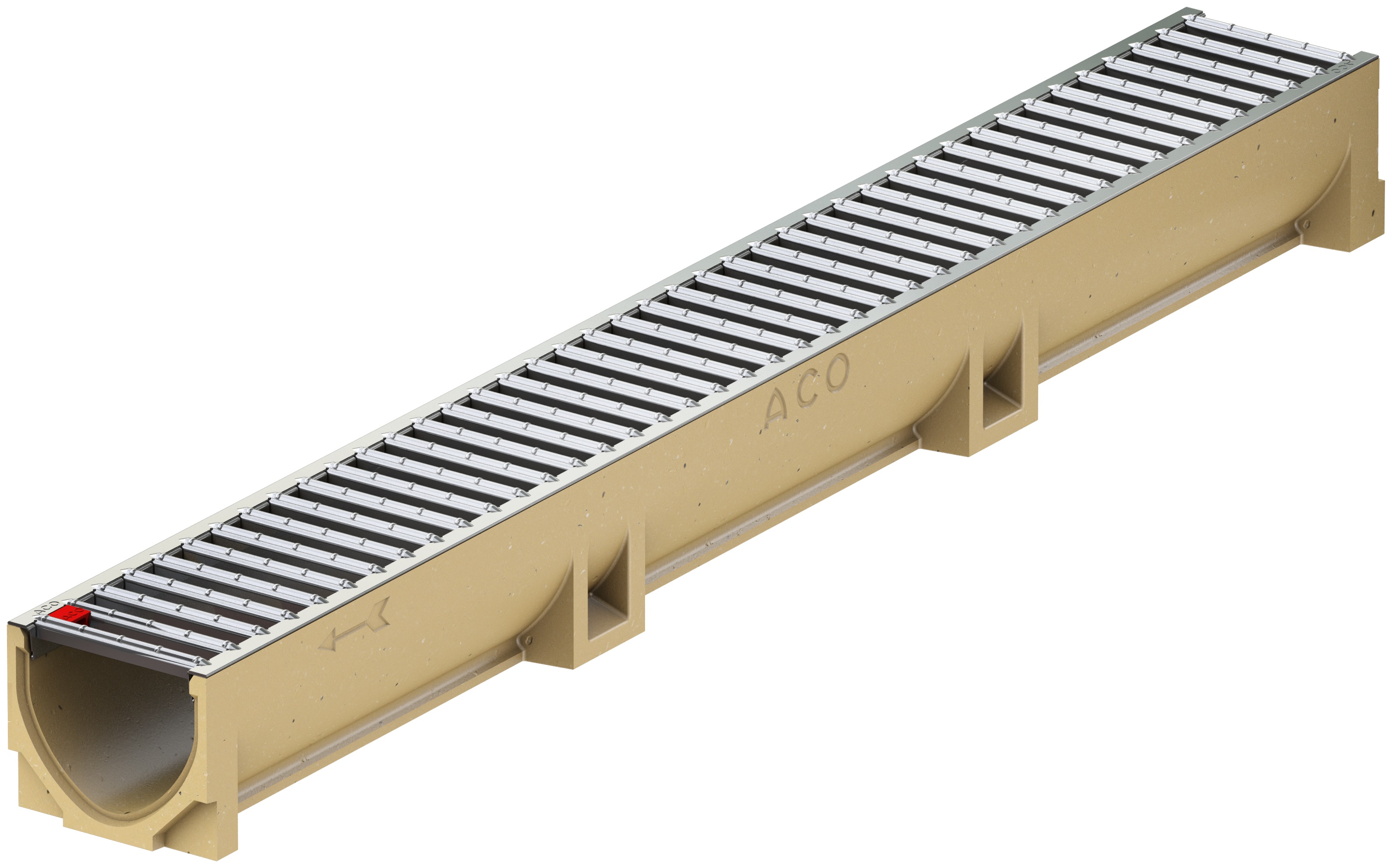 System kanałów z nowym przekrojem V (większa prędkość wody w korycie zapewnia samoczyszczenie), przejezdny dla samochodów osobowych, do stosowania w budownictwie indywidualnym szczególnie tam, gdzie konieczne jest bezpieczne zebranie i kontrolowanie odprowadzanej wody.KANAŁY: Klasa obciążeń: Ruch pieszy, przejezdny dla samochodów osobowych. Materiał: Polimerbeton Rodzaj kanału: Bezspadkowe RUSZTY Klasa obciążeń: Ruch pieszy, przejezdny dla samochodów osobowych Materiał: Stal ocynkowana, stal nierdzewna, żeliwo Mocowanie rusztu: Na zatrzaski (bezśrubowo)