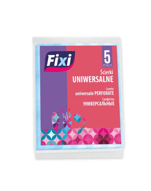 Ścierki uniwersalne Fixi przeznaczone są do czyszczenia i polerowania gładkich powierzchni, takich jak: armatura kuchenna i łazienkowa, naczynia szklane, glazura, meble, stoły, czy blaty lub RTV. Dzięki temu, że są tak chłonne i miękkie nie pozostawiają smug na czyszczonej powierzchni. Ściereczki uniwersalne są wielokrotnego użycia. W opakowaniu znajduje się 5szt ścierek tego samego koloru (żółta kratka)