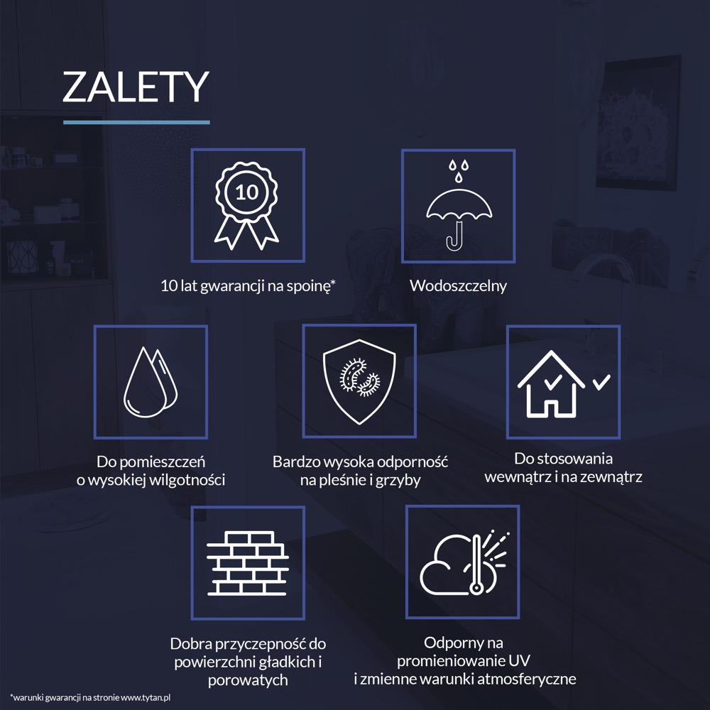 Szukasz uszczelniacza nadającego się do pomieszczeń o zwiększonej wilgotności, który z pewnością ochroni spoiny przed pleśnią, grzybami i glonami? Wybierz TYTAN PROFESSIONAL Silikon sanitarny UPG wzbogacony o innowacyjną formułę Upper Protection Grade, która daje gwarancje na wysokie właściwości grzybobójcze. Silikon Sanitarny UPG z serii TYTAN PROFESSIONAL charakteryzuje się także doskonałą przyczepnością do wielu podłoży wykonanych z drewna, porcelany, szkła czy glazury. Odporny jest na działanie detergentów i środków czyszczących. Dodatkowo posiada odporność na wahania temperatur i promieniowanie UV. Co więcej, fuga silikonowa jest bardzo elastyczna, łatwa w aplikacji i zachowuje na lata swoje właściwości fizyczne (posiada 10 letnią gwarancje). Silikon bezbarwny TYTAN to uszczelniacz pozwalający na spoinowanie szczelin, dylatacji, połączeń oraz płytek ceramicznych. Służy też do uszczelniania kabin prysznicowych, zlewozmywaków, umywalek oraz blatów kuchennych. Dodatkowo umożliwia uszczelnianie instalacji kanalizacyjnych i hydraulicznych oraz urządzeń sanitarnych. Silikon do uszczelniania to idealny produkt budowlany do zastosowania podczas remontu kuchni, łazienki czy toalety. Ponadto można go również wykorzystać do innych drobnych prac domowych a nawet do wykańczania wnętrz. Zalety: - perfekcyjny do pomieszczeń o podwyższonej wilgotności - zawiera formułę UPG chroniącą przed działaniem grzybów, pleśni i glonów - posiada odporność na detergenty i środki czyszczące - odporny na promieniowanie UV i wahania temperatur - nadaje się do rozmaitych powierzchni takich jak: szkło, drewno, ceramika i porcelana Zastosowanie: - pozwala na uszczelnianie obrzeży wanien, zlewozmywaków, umywalek i kabin prysznicowych - umożliwia spoinowanie płytek ceramicznych oraz blatów kuchennych - dobrze uszczelnia różne typy połączeń, szczelin i dylatacji - nadaje się do uszczelniania instalacji hydraulicznych i kanalizacyjnych - ułatwia remont łazienki, kuchni, toalety i inne drobne naprawy w całym domu