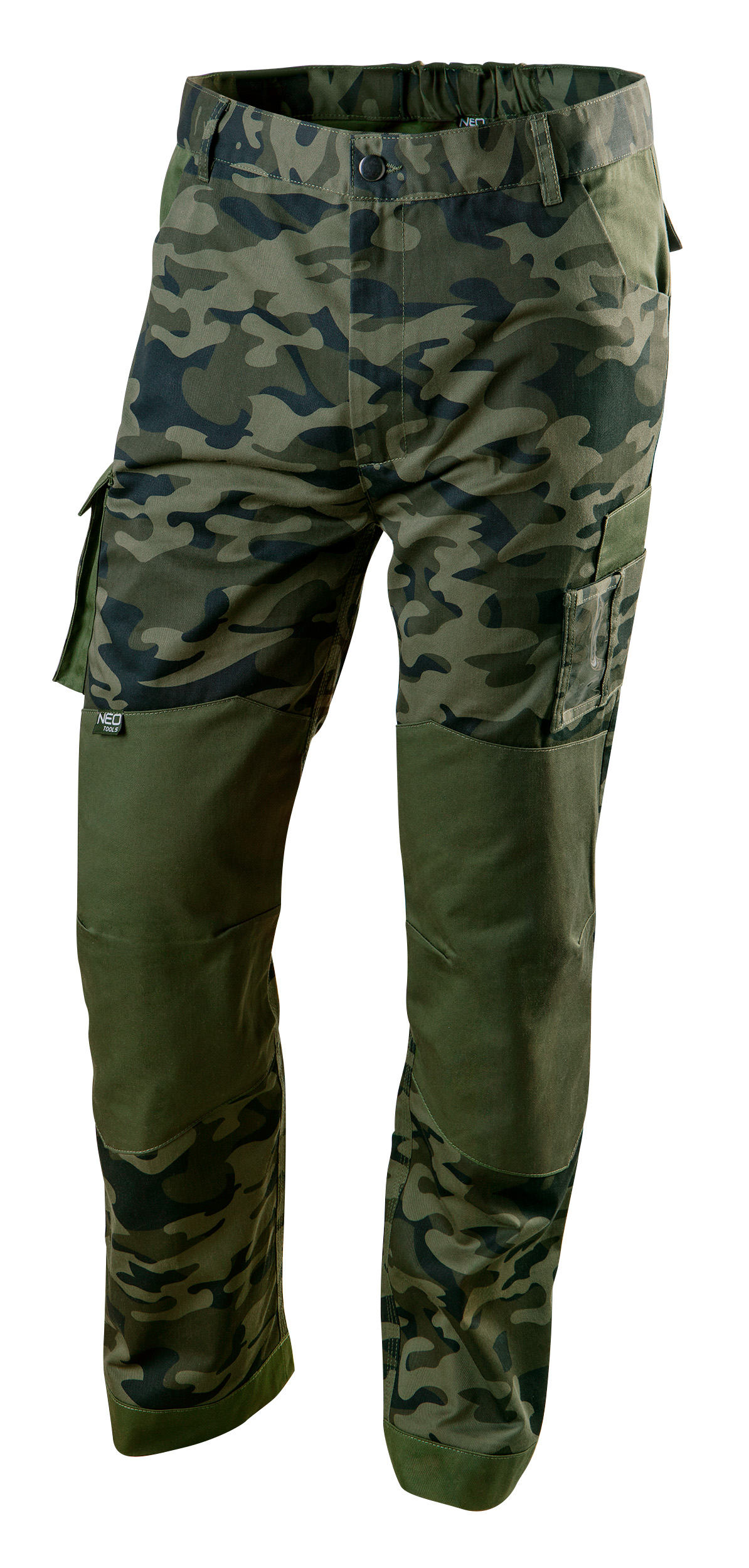 Spodnie robocze NEO z serii CAMO wykonane są z wysokiej jakości bawełniano- poliestrowej tkaniny. Profilowane kolana z kieszeniami na nakolanniki ochronne oraz pojemne i wytrzymałe kieszenie znacznie podnoszą komfort pracy. Elastycznym elementy umieszczone w pasie pozwalają na lepsze dopasowanie rozmiaru. Potrójne szwy wewnętrzne zwiększają odporność na rozerwania. Spodnie wyróżnia unikalny wzór moro. Modna kolorystyka oraz nowoczesny fason pozwalają na użytkowanie produktu również poza pracą. Gwarantem jakości jest certyfikat europejski oraz wykonanie zgodne z normą EN ISO 13688:2013. Marka NEO spełnia oczekiwania profesjonalistów.