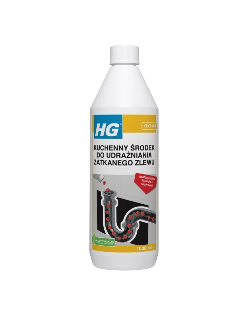 Przy źle przepuszczającym odpływie: Przepuścić najpierw przez odpływ letnią wodę przez około 1 minutę. Następnie wlać około 3 filiżanek (przynajmniej 300 ml) HG KUCHENNEGO ŚRODKA DO UDRAŻNIANIA ZATKANEGO ZLEWUdo odpływu. Następnie wlać taką samą ilość letniej wody, aby dokonać aktywacji preparatu HG. Pozostawić produkt na kilka godzin, aby miał on czas „przetrawić” zanieczyszczenie (trwa to minimalnie 6 godzin), następnie ponownie przepłukać odpływ wodą. Aby zapobiegać blokadom i nieprzyjemnym zapachom: wlewać raz na 2 tygodnie do odpływu odrobinę (ok. 25 ml) HG KUCHENNEGO ŚRODKA DO UDRAŻNIANIA ZATKANEGO ZLEWU.