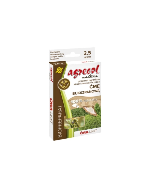 preparat mikrobiologiczny zawierający wyspecjalizowane szczepy bakterii Bacillus sp. ogranicza porażenie roślin przez ćmę bukszpanową oraz redukuje powstałe szkody ciągła obecność pożytecznych bakterii stymuluje rośliny do szybszej regeneracji doskonały do stosowania zapobiegawczego oraz we wczesnych fazach porażenia roślin produkt nie posiada okresu karencji ani prewencji