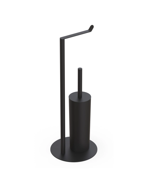 Nowoczesny stojak na papier toaletowy ze szczotką WC w kolorze czarnym znanej marki AWD Interior.