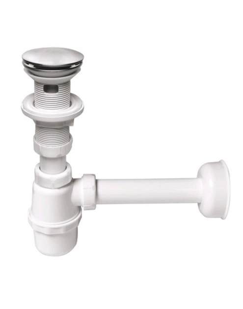 Butelkowy, spust klik-klak z przelewem, czyszczony z góry, duży grzybek nierdzewny