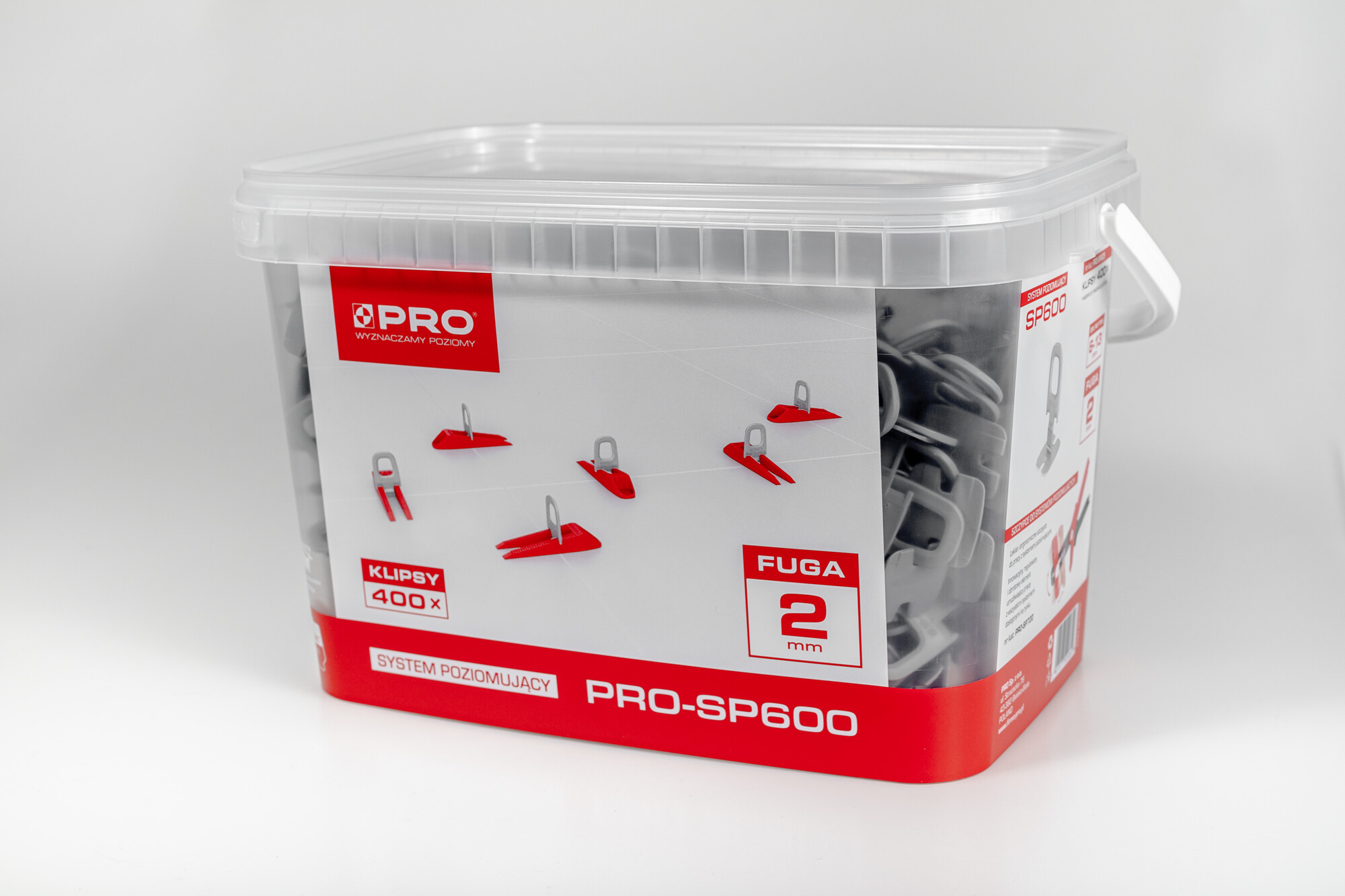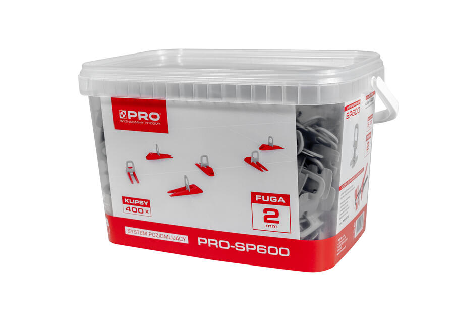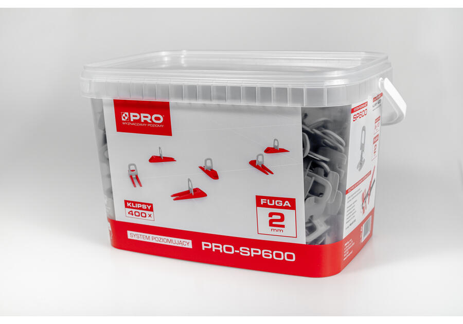 System poziomujący PRO-SP600 2 mm klipsy 400 szt. wiadro 5 L PRO