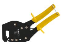Szczypce do łączenia profili TOPEX (nr ref. 43E101) o długości 260 mm. Poprzez zagniatanie blachy tworzą trwałe i stabilne połączenie profili tworzących konstrukcję pod budowę ścianek działowy i sufitów podwieszanych z płyt kartonowo gipsowych. Używając szczypiec oszczędzasz na wkrętach. Gumowane, antypoślizgowe uchwyty podnoszą komfort pracy. Marka TOPEX skierowana jest do majsterkowiczów.