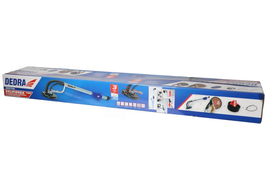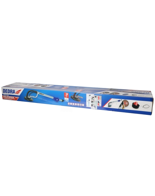Szlifierka wysięgnikowa do gipsu zapewnia idealny efekt wygładzenia ściany lub sufitu. Urządzenie marki DEDRA cechuje się wytrzymałą, poręczną konstrukcją. Kluczową zaletą modelu jest uchylna głowica, która działa sprawnie w dwóch płaszczyznach. Regulowane obroty umożliwiają dostosowanie prędkości pracy do typu powierzchni. Średnia prędkość obrotowa głowicy na poziomie 1000-2000 obrotów na minutę przyspiesza i usprawnia szlifowanie. Dodatkowym ułatwieniem jest opcja podłączenia odkurzacza, który będzie na bieżąco usuwać nagromadzony pył. Urządzenie o wadze 3,3 kg jest stosunkowo lekkie i łatwe w użytkowaniu.