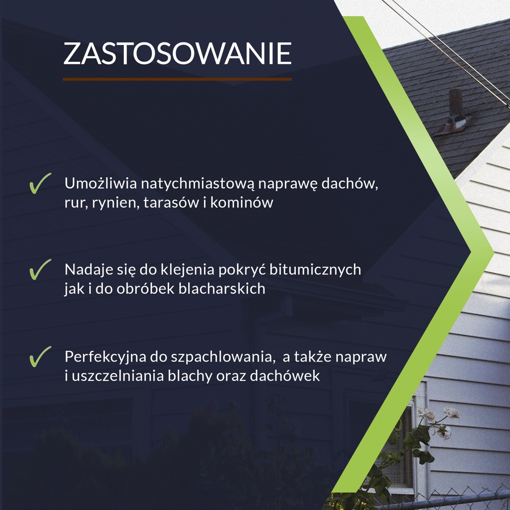 Kompletujesz chemię budowlaną niezbędną do budowy domu czy generalnego remontu? A może czekają Cię pilne prace dekarskie bądź naprawa dachu? W takich okolicznościach bez zastanowienia sięgnij po niezawodny produkt budowlany od polskiej marki Tytan – Szpachlę uszczelniacz X-TREME. Wspomniana szpachla gwarantuje szybkie, proste a przede wszystkim skuteczne naprawy oraz uszczelnienia. Bezbarwny uszczelniacz dekarski charakteryzuje się elastycznością, trwałością i doskonałą przyczepnością do najpopularniejszych podłoży budowlanych. Dodatkowo jest też niezwykle trwały i skuteczny w mostkowaniu różnorodnych pęknięć oraz ubytków. Co więcej, szpachla uszczelniająca z serii Tytan Professional sprawdza się nawet przy ujemnych temperaturach, opadach deszczu i w zastoinach wody. TYTAN PROFESSIONAL Szpachla uszczelniacz X-TREME przeznaczona jest do natychmiastowych napraw dachu, rynien, rur oraz tarasów i kominów. Ponadto pozwala na klejenie pokryć bitumicznych i wykonywanie rozmaitych obróbek blacharskich. Produkt umożliwia zarówno perfekcyjne uszczelnianie, jak i szpachlowanie. Zalety: - do trudnych warunków takich jak – zastoiny wody czy ujemne temperatury - szybkie i skuteczne mostkowanie rys, pęknięć i ubytków - szczelność, trwałość i podwyższona elastyczność - bardzo dobra przyczepność do typowych podłoży budowlanych Zastosowanie: - skuteczna naprawa dachów, rur, rynien i kominów - klejenie pokryć bitumicznych - obróbki blacharskie - uszczelnianie tarasów, blach i dachówek
