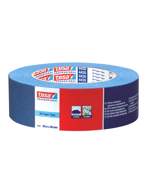 Odporna na działanie promieni UV taśma malarska z lekko krepowanego papieru tesa 4435 posiada nośnik pokryty substancją klejącą z kauczuku naturalnego. Taśmę cechuje zrównoważona siła łączenia. Jest łatwa w użyciu i można ją urywać ręcznie. Taśma ta w szczególności sprawdza się w zastosowaniu podczas zewnętrznych prac malarskich, w tym na chropowatych powierzchniach, a dzięki odporności na działanie promieniu UV może być stosowana nawet do 2 tygodni. Taśma tesa 4435 stanowi gwarancję profesjonalnego i precyzyjnego wykonania prac malarskich.