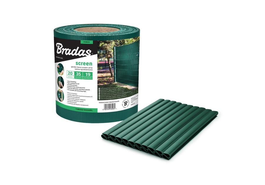 Taśma ogrodzeniowa 19 cm x 35 m + klipsy 20 sztuk, zielona BRADAS