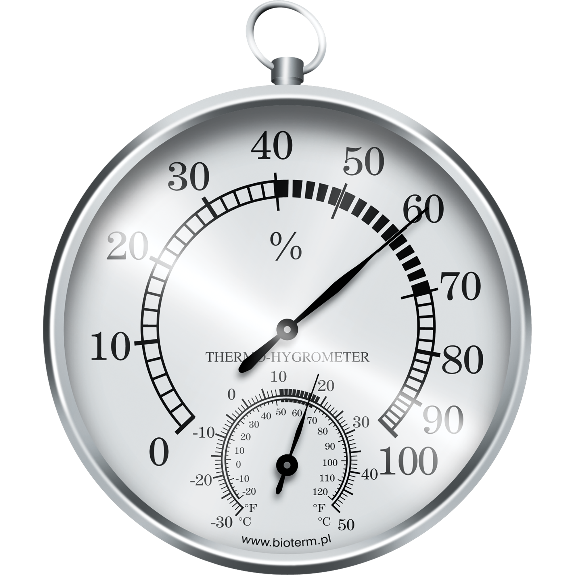 Ten srebrny, okrągły, bimetaliczny termometr z funkcją higrometru pozwoli Ci na szybką i bezproblemową kontrolę temperatury, a także wilgotności powietrza. Minimalistyczna skala termometru oraz higrometru sprawia, że urządzenie jest proste w odczycie i obsłudze. Skala termometru umożliwia dokonanie odczytu temperatury -30°C do + 50°C z tolerancją błędu +/- 1°C. Higrometr u dołu urządzenia wyposażony jest natomiast w skalę umożliwiającą kontrolę nawilżenia powietrza od 0% do 100% z dokładnością pomiaru od +/- 3% do +/- 5% wilgotności względnej. Termometr wyposażony jest w obudowę umożliwiającą zawieszenie go w dowolnie wybranym miejscu. Higrometry są przyrządami których podstawową funkcją jest pomiar wilgotności względnej powietrza. Znajdują one zastosowanie w magazynach, archiwach, bibliotekach, przemyśle spożywczym, a także w użytku domowym. Urządzenie to sprawdzi się więc zarówno w domach, jak i miejscach pracy. Średnica zegara 70 mm.