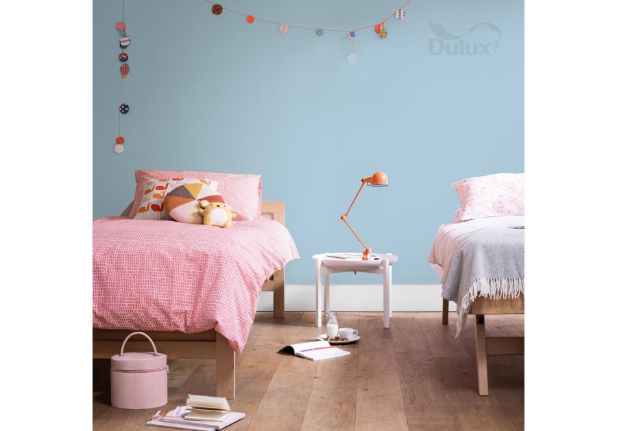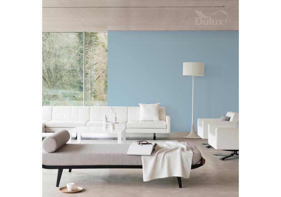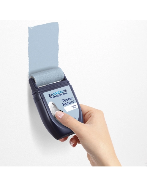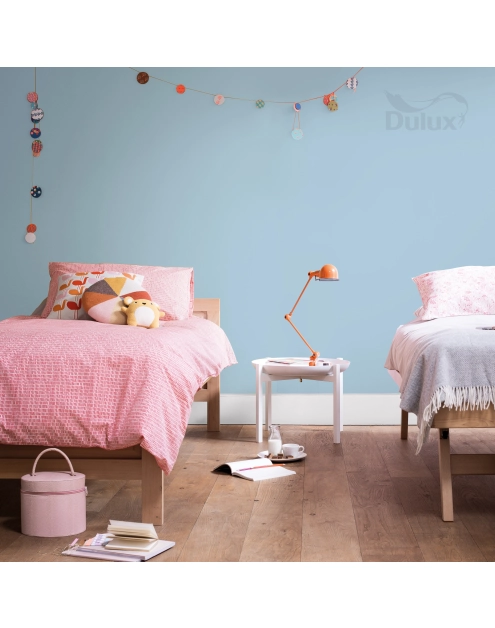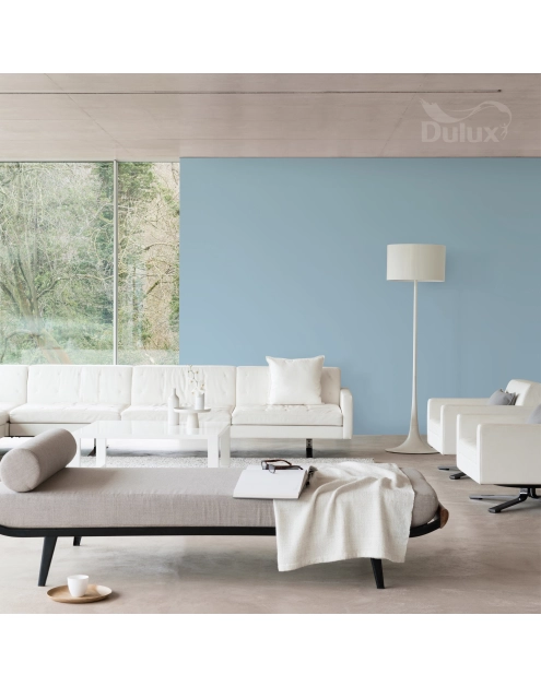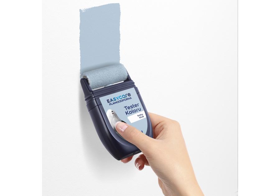 Farba EasyCare DULUX to nowoczesna, plamoodporna, zmywalna farba o rewolucyjnych właściwościach hydrofobowych (nie chłonie wody). Wyróżnia się także dobrym kryciem i trwałością koloru. Niweluje niedoskonałości podłoża. Do wyboru paleta 60 kolorów - tu baby blue, idealny do pokoju dziecięcego.