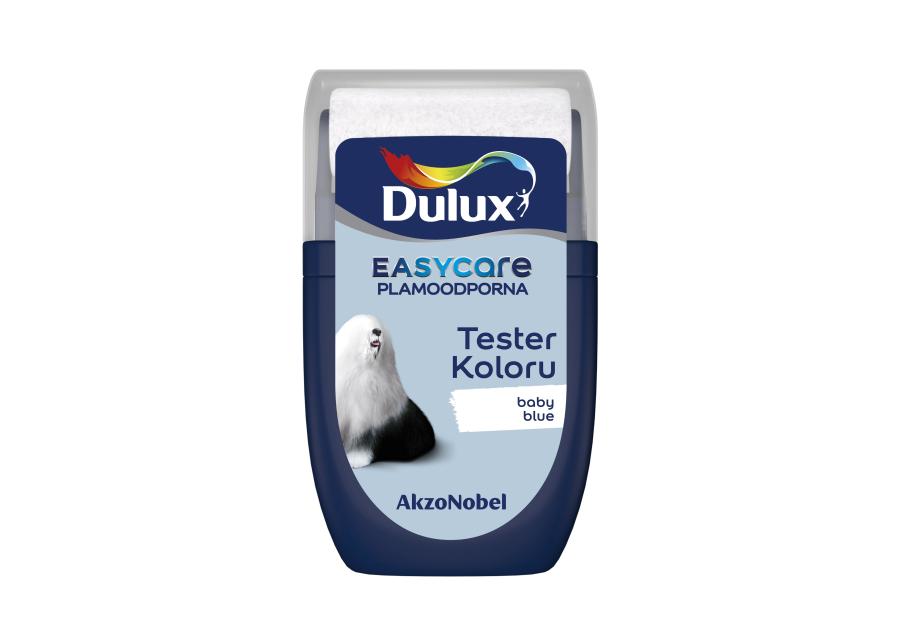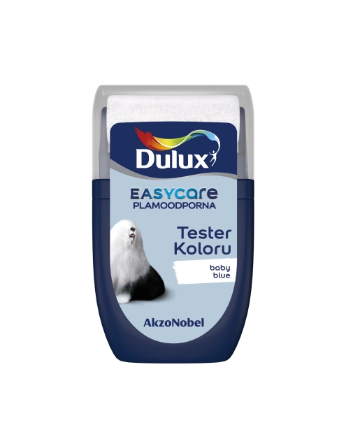 Tester farby EasyCare 0,03 L baby blue DULUX pomoże sprawdzić, czy dany odcień farby odpowiada twoim oczekiwaniom. Można go także użyć do zamalowania małego wycinka uszkodzonej lub zabrudzonej ściany. Tester ma pojemność 0,03 L, co pozwala pomalować około 0,4 m2.