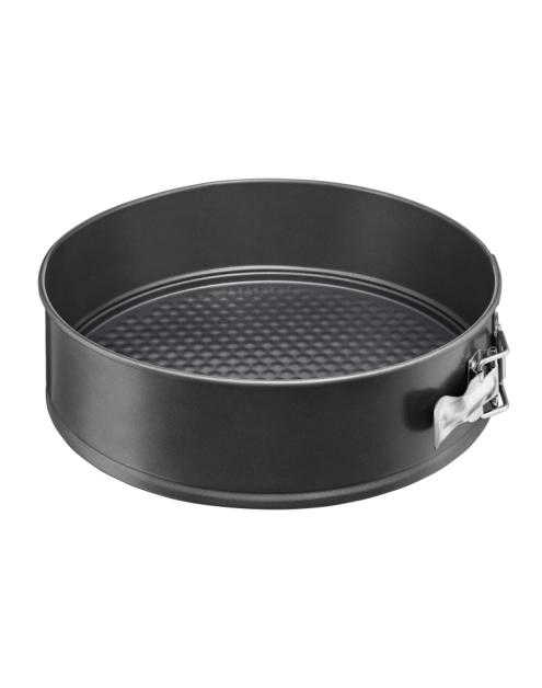 Ta stalowa tortownica o średnicy 28 cm posiada neutralny, czarny kolor, dzięki któremu prezentuje się estetycznie w dowolnej stylizacji kuchennej.