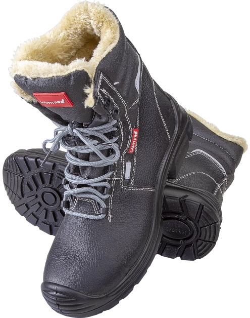 MATERIAŁ: Wierzch: skóra. Podszewka: dzianina futerkowa. Wyściółka: wymienna, futerkowa. Podeszwa: poliuretan dwugęstościowy o właściwościach antypoślizgowych (podłoże stalowe i ceramiczne), odporna na olej napędowy, głęboki protektor oraz paraboliczny obcas zapewniają wysoką stabilność obuwia i komfort chodzenia. KAT. BEZPIECZEŃSTWA: S3 SRC