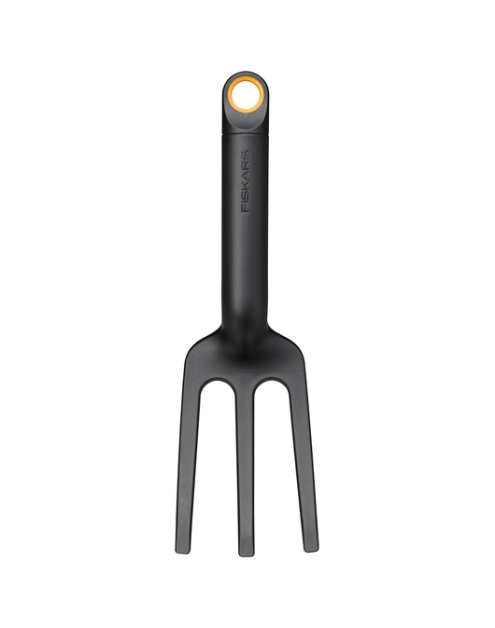 Widełki ogrodnicze Solid marki FISKARS to wysokiej jakości ręczne narzędzie ogrodowe, produkowane w 65% z tworzywa sztucznego pochodzącego z recyklingu i wzmocnione włóknem szklanym zapewniającym wytrzymałość. Widełki posiadają trzy wąskie, zakrzywione zęby, które idealnie sprawdzą się podczas napowietrzania gleby, usuwania chwastów czy drobnych kamieni oraz rozprowadzania kompostu na grządkach ogrodowych. Ergonomicznie zaprojektowany uchwyt zmniejsza zmęczenie dłoni, a wygodny otwór do zawieszenia ułatwia przechowywanie. Komfortowa rękojeść z lekkiego i zarazem wytrzymałego tworzywa jest odporna na zmienne warunki atmosferyczne. Dodatkowo produkt wyposażony jest w specjalny otwór umożliwiający zawieszenie, co sprawia, że najpotrzebniejsze narzędzia są zawsze pod ręką. FISKARS to gama funkcjonalnych narzędzi charakteryzujących się trwałością i wytrzymałością, uniwersalnym zastosowaniem oraz jakością.
