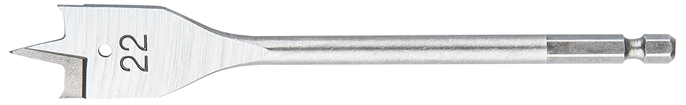 Wiertło łopatkowe do drewna GRAPHITE (nr ref. 57H228) o średnicy 22.0 mm dzięki specjalnemu profilowi ostrza pozwala dwukrotnie zwiększyć prędkość wiercenia i uniknąć efektu wyrywania materiału. Sześciokątny uchwyt typu "Quick Change" pozwala stosować wiertło w uchwytach magnetycznych wkrętarek akumulatorowych.