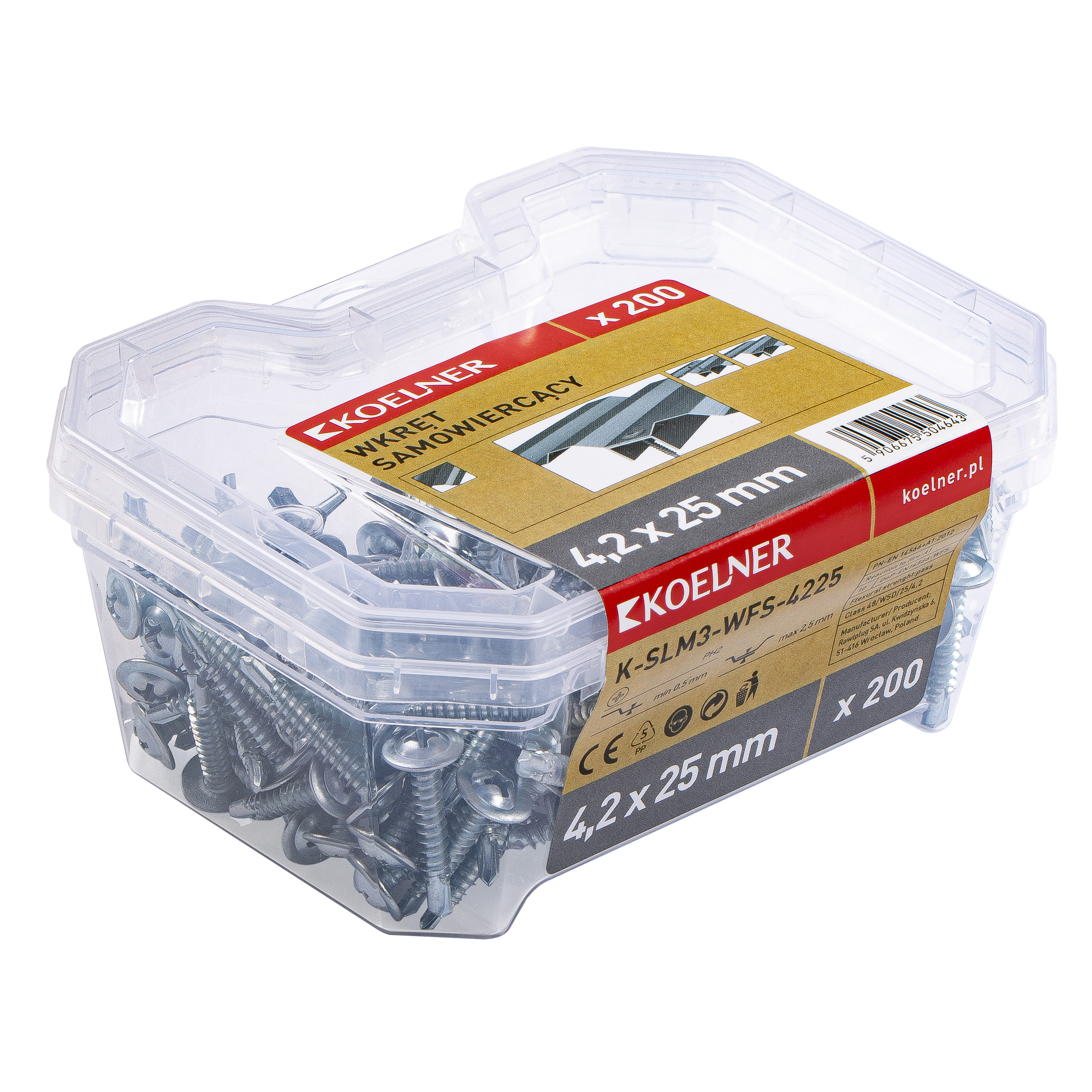 Wkręt samowiercący do cienkich blach i drewna 4,2x25 mm, 200 sztuk KOELNER