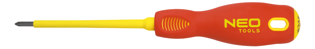 Wkrętak krzyżowy 1000V NEO (nr ref. 04-072) o wymiarach PH1 x 80 mm. Atestowany do pracy pod napięciem do 1000 V. Grot wkrętaka wykonany jest z wyjątkowo wytrzymałej stali SVCM. Końcówka robocza grota została poddana obróbce cieplnej, dzięki czemu uzyskano odpowiednią twardość i odporność na zgięcia 56 HRC. Wkrętak posiada magnetyczną końcówkę. Trójgraniasty kształt uchwytu z wyprofilowanym oparciem dla kciuka zmniejsza obciążenie dłoni podczas pracy i ułatwia uzyskanie optymalnego momentu obrotowego. Dwumateriałowy uchwyt zapobiega ślizganiu się w dłoni, odporny jest na działanie chemikaliów, olejów i smarów. Jakość narzędzia potwierdzona certyfikatem TÜV i 25-letnią gwarancją producenta. Marka NEO spełnia oczekiwania profesjonalistów.