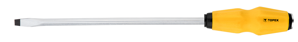 Wkrętak płaski do pobijania TOPEX (nr ref. 39D255) o wymiarach 8 x 250 mm. Przeznaczony do dokręcania i wykręcania zapieczonych, mocno dokręconych śrub. Grot wykonany z wytrzymałej stali chromowo-wanadowej, zapewniającej długą żywotność narzędzia. Magnetyczna końcówka z hartowanej stali ułatwia pracę narzędziem. Ergonomiczny uchwyt z tworzywa sztucznego dobrze leży w dłoni, co podnosi komfort pracy. Marka TOPEX skierowana jest do majsterkowiczów.
