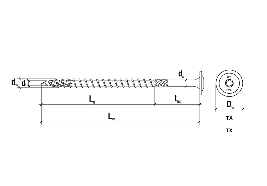 Wkręty ciesielskie do drewna z łbem podkładkowym WKCP 6,0x280 WKRĘT-MET