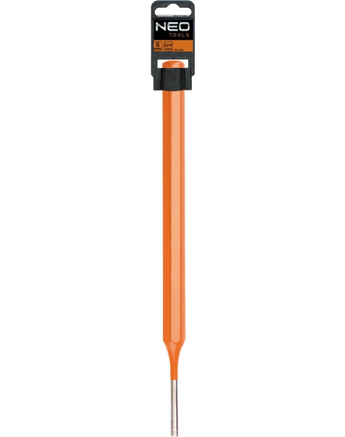 Wybijak NEO (nr ref. 33-066) o długości 150 mm i sześciokątnym przekroju. Umożliwia wybijanie przedmiotów z już istniejących otworów. Zakończony okrągłym przekrojem o średnicy 3 mm. Wykonany z wysokiej jakości stali chromowo-wanadowej, zapewniającej długą żywotność produktu. Marka NEO spełnia oczekiwania profesjonalistów.