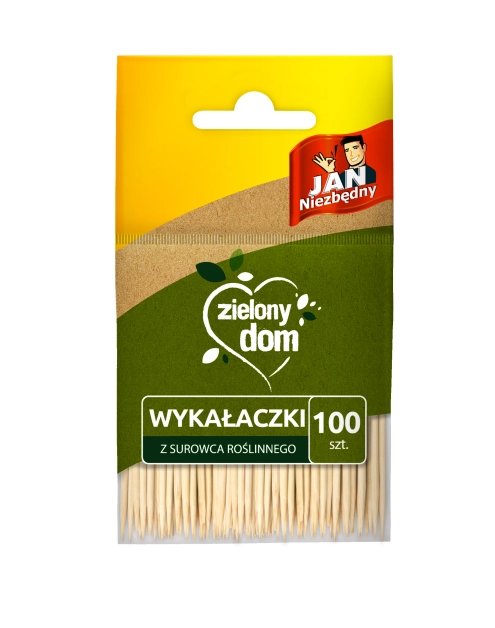 Wykałaczki z surowca roślinnego oferowane przez markę Jan Niezbędny są sprzedawane w opakowaniu po 100 sztuk. Mają tradycyjne wymiary, zostały stworzone z wysokiej jakości drewna. Są to niezbędne przybory kuchenne, które obowiązkowo powinny znaleźć się na każdym stole obok soli i pieprzu. Świetnie sprawdzają się do niewielkich przystawek, a także podczas gotowania. Są jednokrotnego użytku.