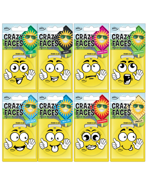 Przepiękne zapachy samochodowe, które zachwycają świeżością oraz cudowną wonią znacząco wpływają na komfort jazdy. Dzięki nim podróż mija znacznie przyjemniej, a humory zarówno pasażerów, jak i kierowcy są znacząco poprawione. Wszyscy, którzy chcą, aby podróż przebiegła w miłej atmosferze powinni zainteresować się tym produktem. Dobrej klasy zapach Crazy Faces tekturowy vanilia BOTTARI spodoba się wszystkim miłośnikom słodkich aromatów. Jego cudowny waniliowy zapach będzie ukojeniem dla zmysłów i duszy. Produkt wyróżnia się doskonałą jakością wykonania, dzięki czemu szybko się nie zużywa. Jego żółty kolor przykuwa wzrok i sprawia, że zapach jest również ciekawym dodatkiem.
