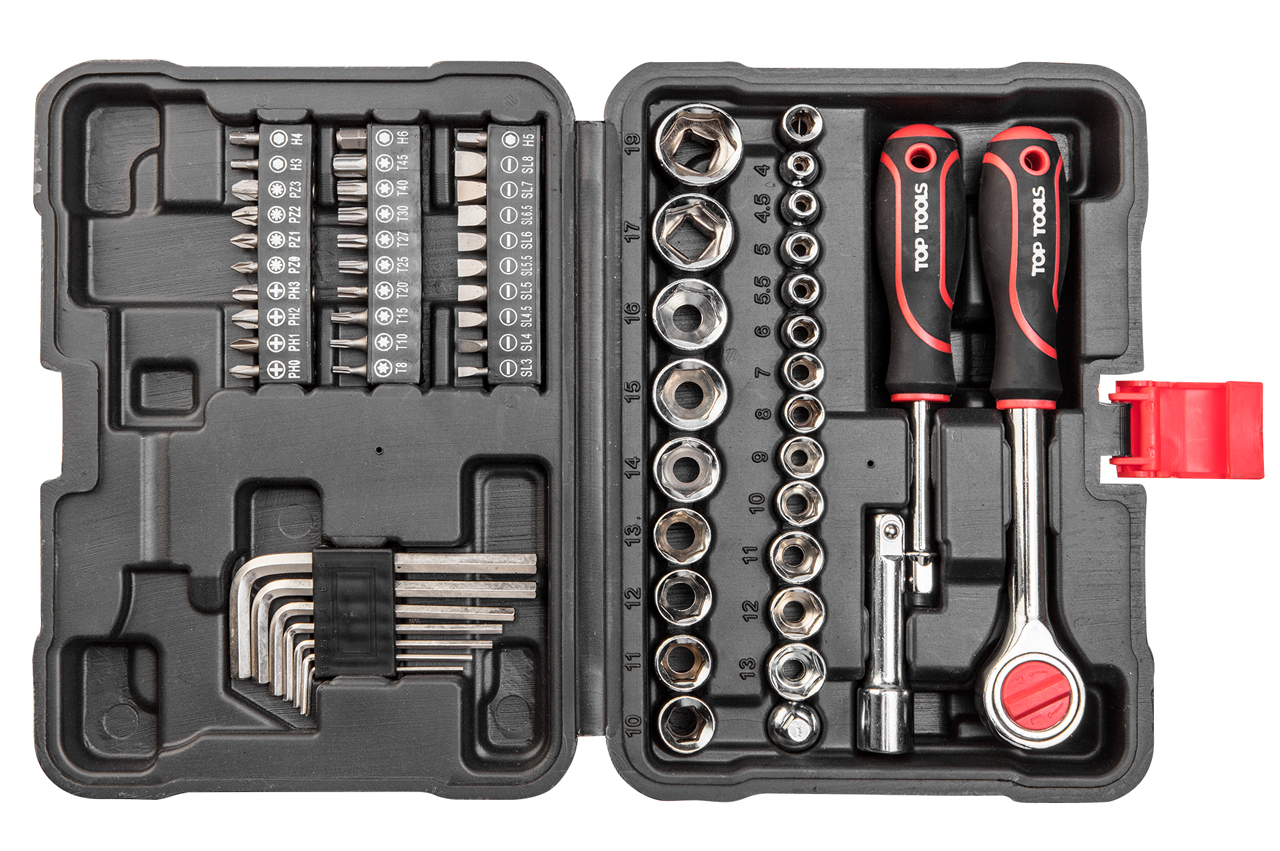Zestaw kluczy nasadowych 1/4", 3/8", 63 sztuki TOP TOOLS