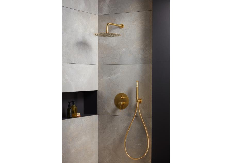 Komfortowe rozwiązania w łazience to produkty funkcjonalne i piękne, ale to również rozwiązania kompaktowe. W przestrzeniach łazienkowych, gdzie cenny jest każdy centymetr, systemy podtynkowe sprawdzają się doskonale. Produkty podtynkowe Moza Brushed Gold to także komfort montażu. Gotowe, kompletne zestawy zawierają wszystko, co niezbędne, aby pewnie i łatwo zamontować je w łazience. Nie trzeba oddzielnie dobierać elementów - w jednym pudełku jest już wszystko, czego potrzeba. Wybór armatury podtynkowej zapewnia wygodę użytkowania, dzięki oszczędności miejsca, ale też zmniejszając ilość elementów, które trzeba na co dzień czyścić. Płaskie fronty baterii podtynkowych łatwo umyć, a ukrycie w ścianie elementów montażowych całkowicie eliminuje potrzebę ich czyszczenia. Projekty Moza są doszlifowane w najdrobniejszych szczegółach. Każdy element ma znaczenie: ultranowoczesne rączki natrysków w deszczowniach premium, wylewki w bateriach umywalkowych, kształt baterii termostatycznych. W kolekcji znajdują się wszelkie niezbędne produkty, aby kompleksowo wyposażyć każdą łazienkę. Powłoka baterii Moza Brushed Gold powstała dzięki próżniowej technice nanoszenia PVD, gwarantującej wysoką odporność na zarysowania czy uszkodzenia. Sam kolor natomiast jest spójny z akcesoriami łazienkowymi KFA Armatura, dzięki czemu nie trzeba szukać innych, pasujących do baterii.