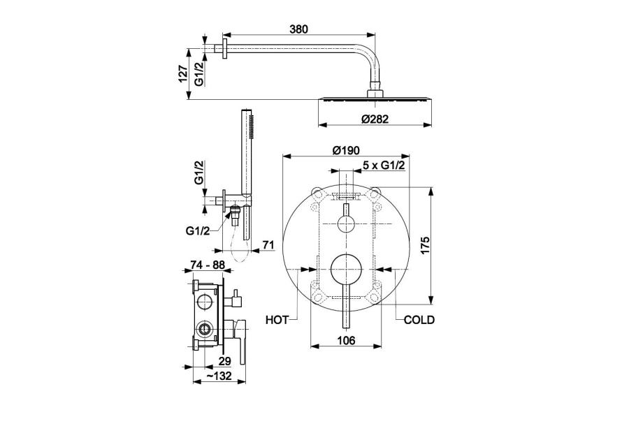 Zestaw natryskowy podtynkowy z baterią 3-funkcyjną Moza Brushed gold KFA