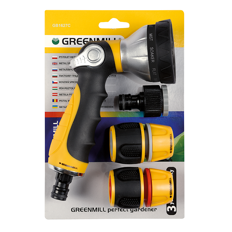Zestaw złączek na wąż 1/2 z pistoletem 10-funkcyjnym na kran 3/4-1/2 GREENMILL AQUASYSTEM