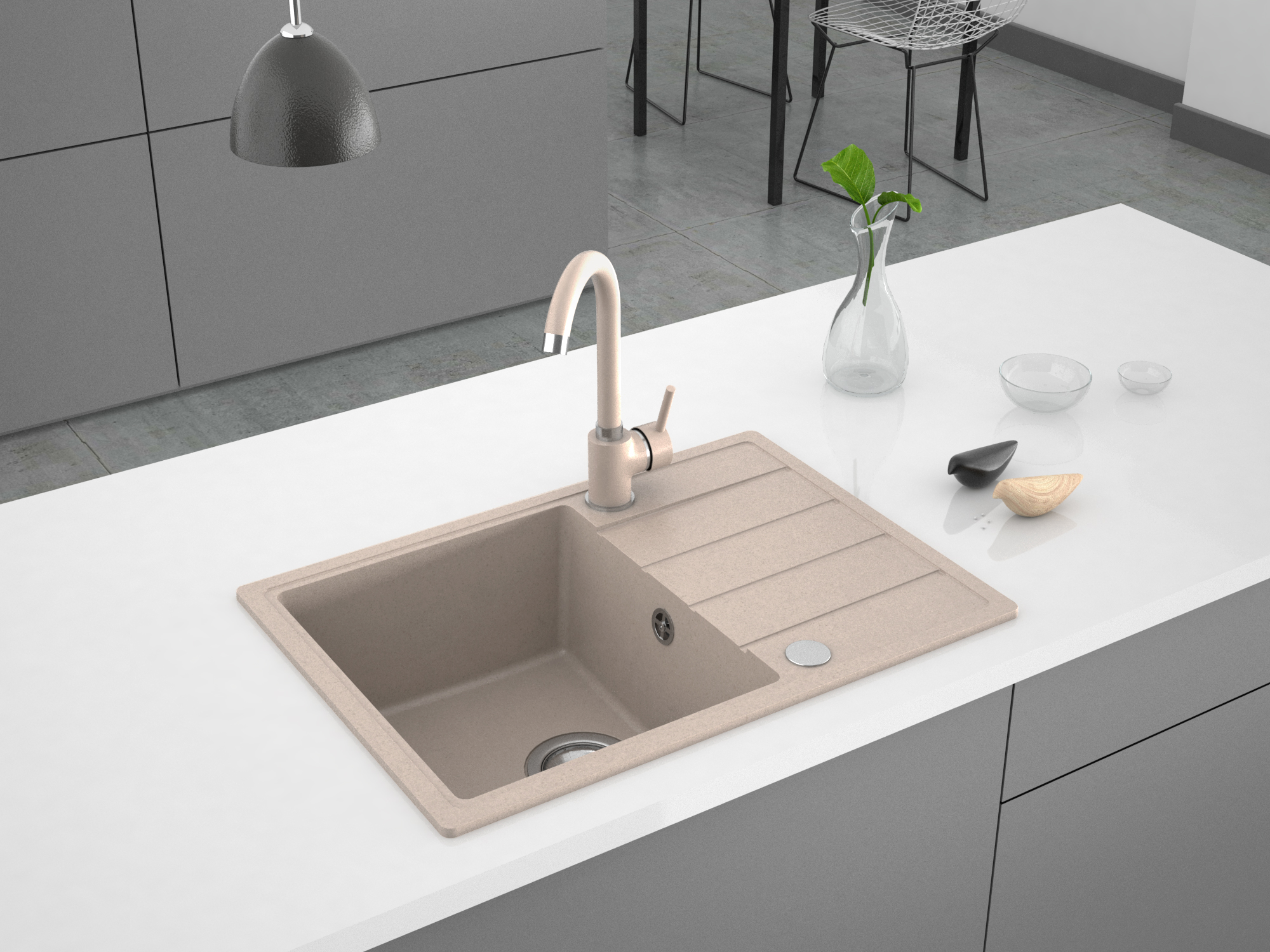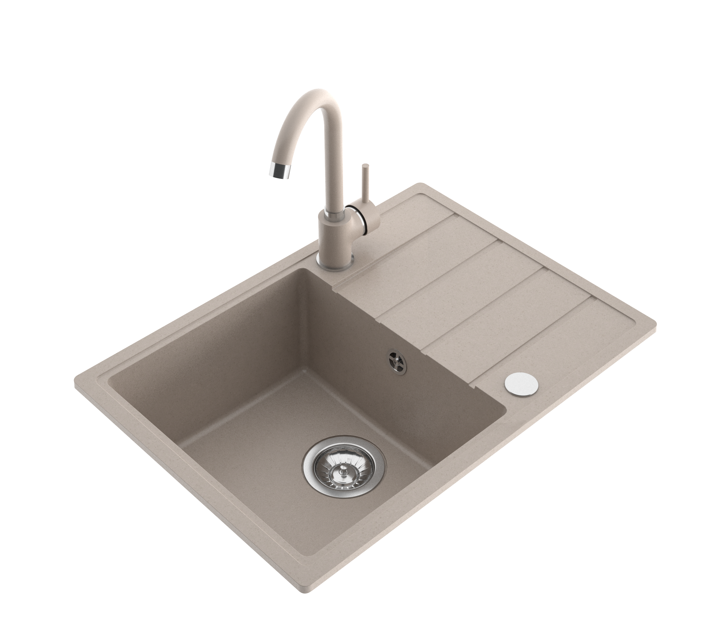 Zlewozmywak granitowy Metro 1-komorowy piaskowy 62x44x19,5 cm syfon manualny, bateria U MILÓ