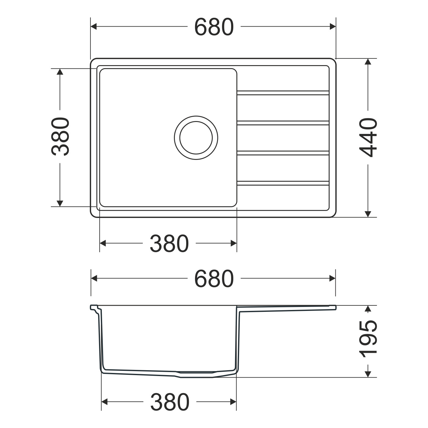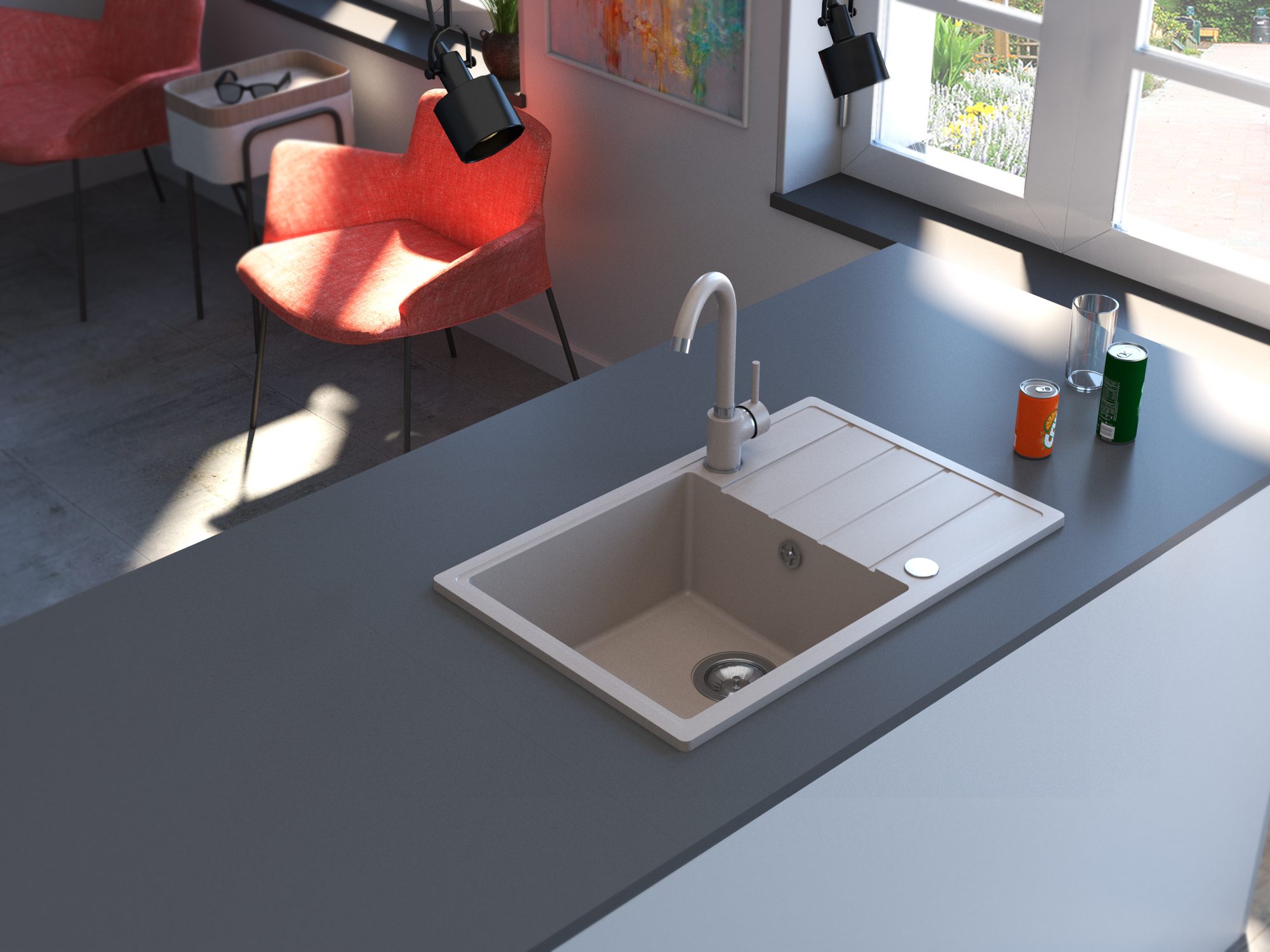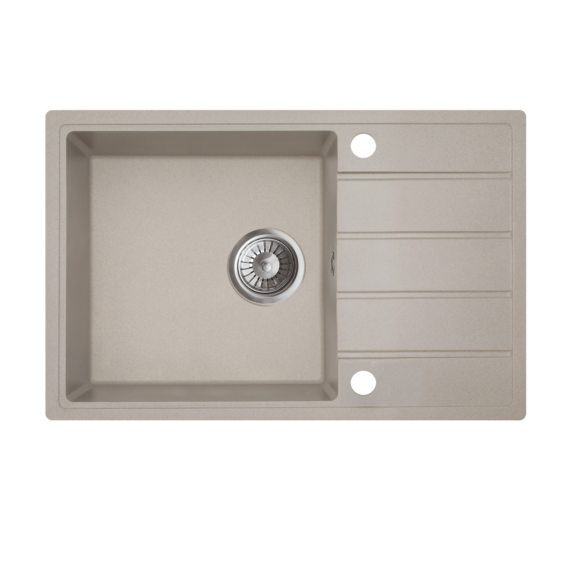 Zlewozmywak granitowy Metro piaskowy, 1 duża komora z ociekaczem, 68x44x19,5 cm syfon manualny MILÓ